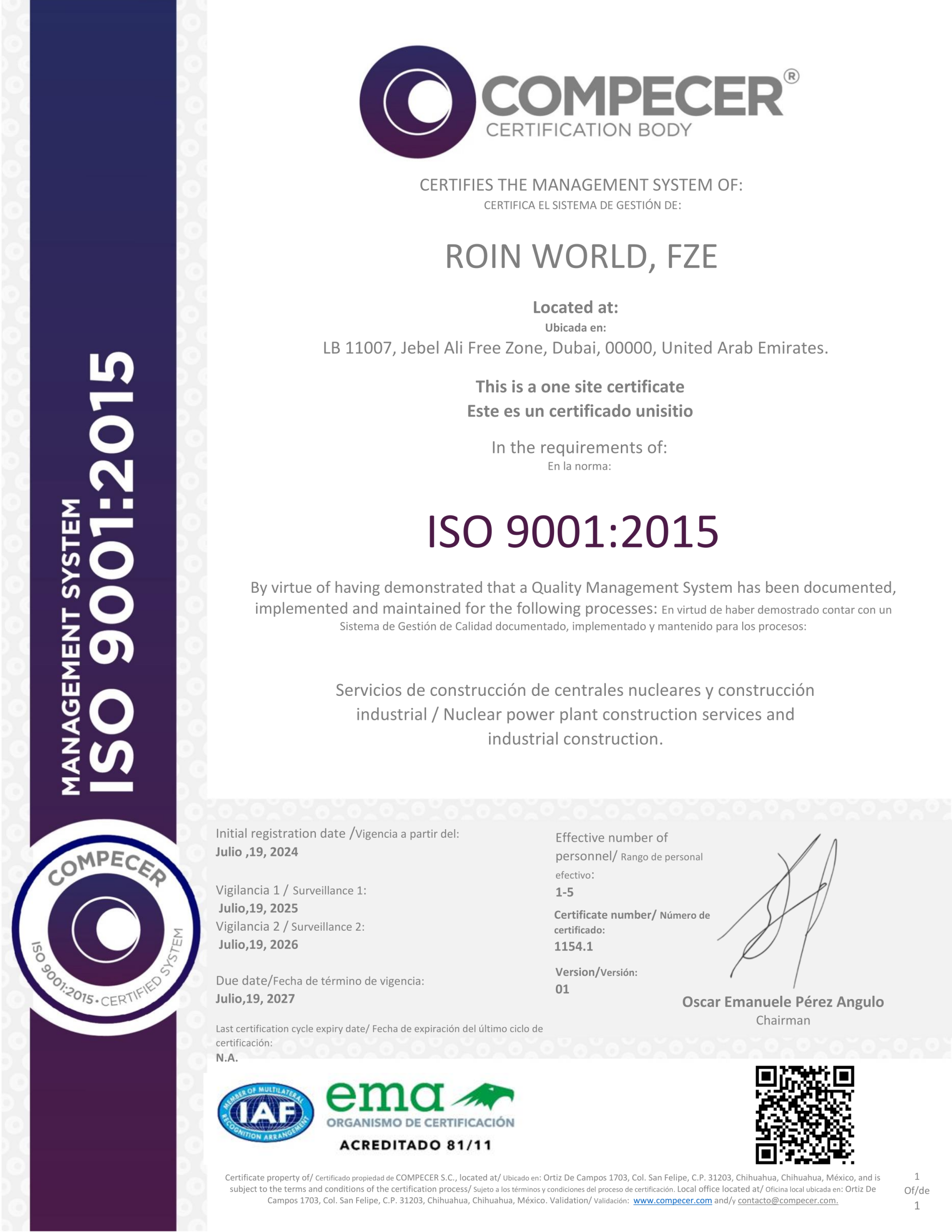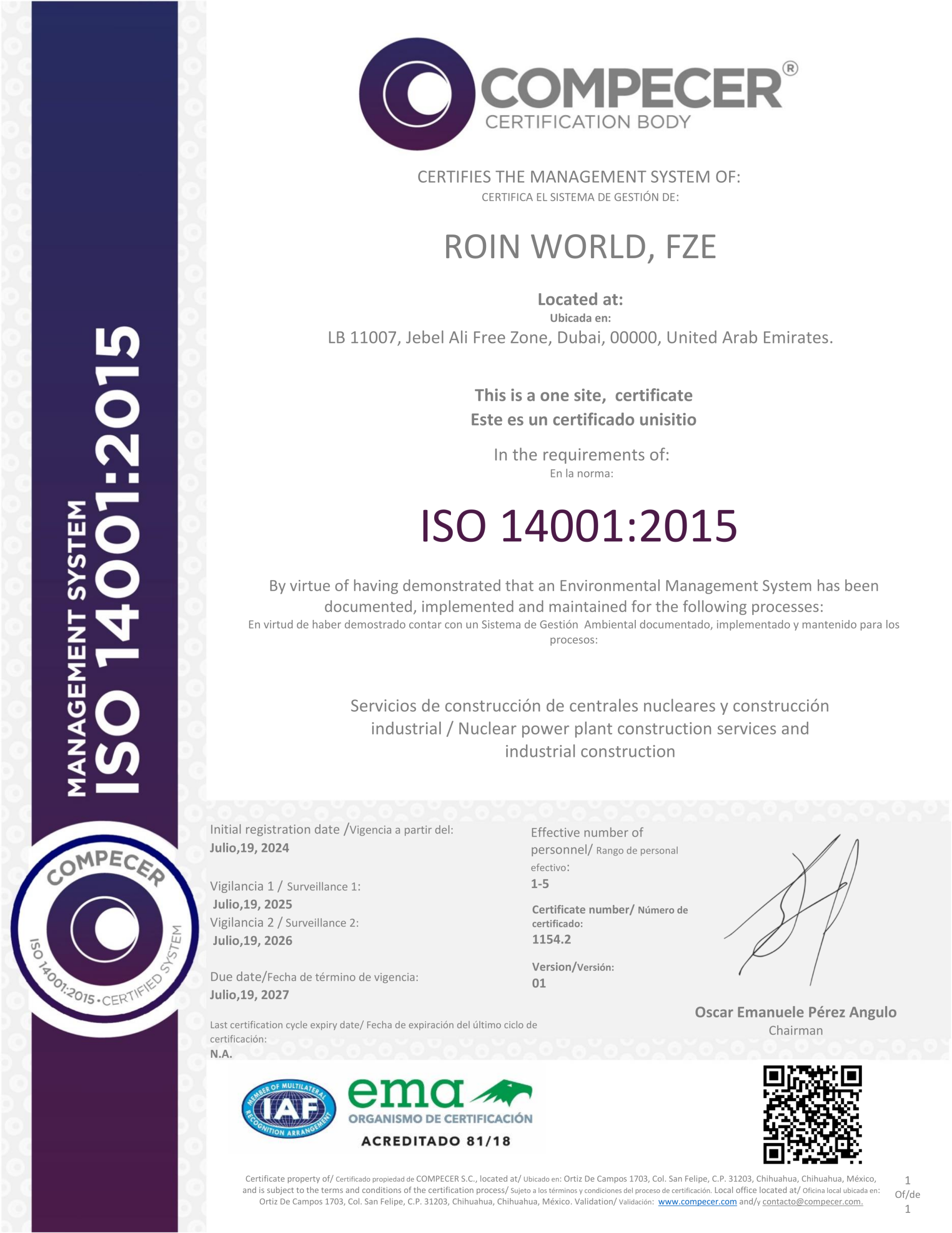 The Company is committed to maintaining the highest quality standards, with its management system fully aligned with international certifications: ISO 9001:2015 (Quality Management), ISO 14001:2015 (Environmental Management), and ISO 45001:2018 (Occupational Health and Safety).